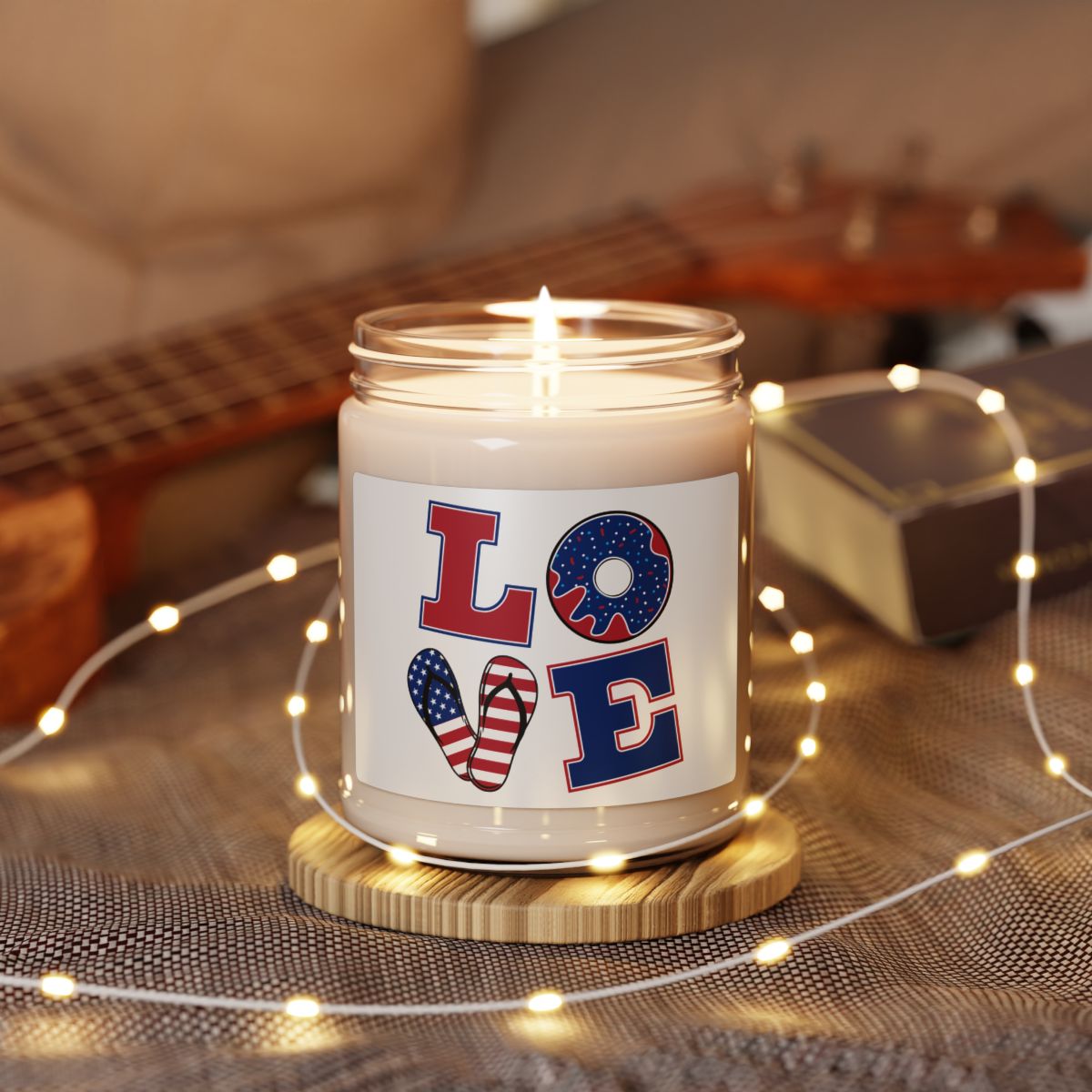 Patriotic "LOVE" Soy Candle — 9oz Americana Scented Jar for 4th of July & Gifts